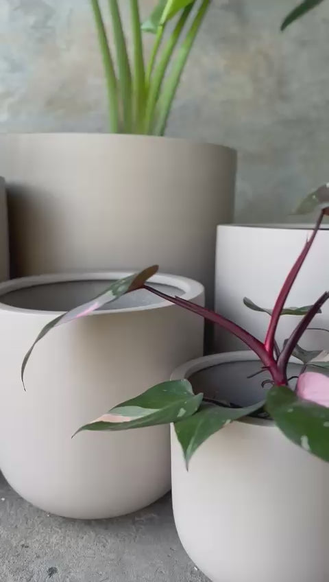 Este pote está elaborado en fibra de vidrio de color taupe, ofreciendo una estética moderna y sofisticada que se adapta fácilmente a distintos estilos decorativos. Su diseño de líneas suaves y forma cilíndrica aporta equilibrio visual y una presencia elegante sin sobrecargar el espacio. El acabado mate resalta su carácter minimalista, convirtiéndolo en una opción ideal para plantas naturales en interiores y exteriores. Gracias a su material resistente, es perfecto para quienes buscan durabilidad y diseño contemporáneo en una sola pieza.